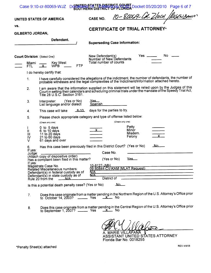 SOUTHERN DISTRICT OF FLORIDACASE NO. 10-80069-CR-Zlock/Rosenbaum