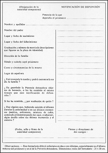 Sección III: Fallecimientos de prisioneros de guerra